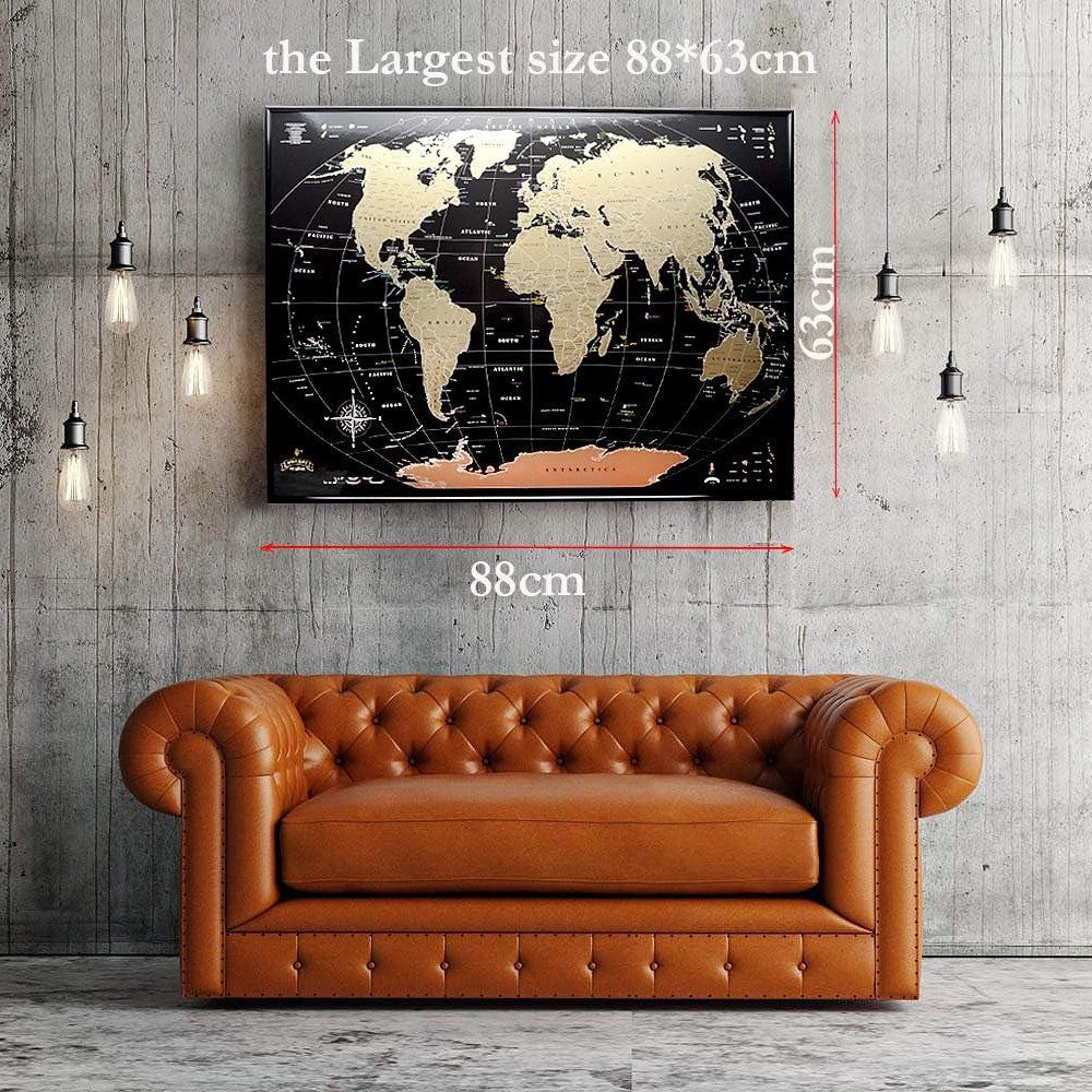 The Large Scratch Off World Travel Map is a stylish and interactive way to track your global adventures. Crafted with high-quality, eco-friendly materials, this 35x25 inches map features a luxurious black and gold design, perfect for marking your travels and enhancing your geography knowledge.