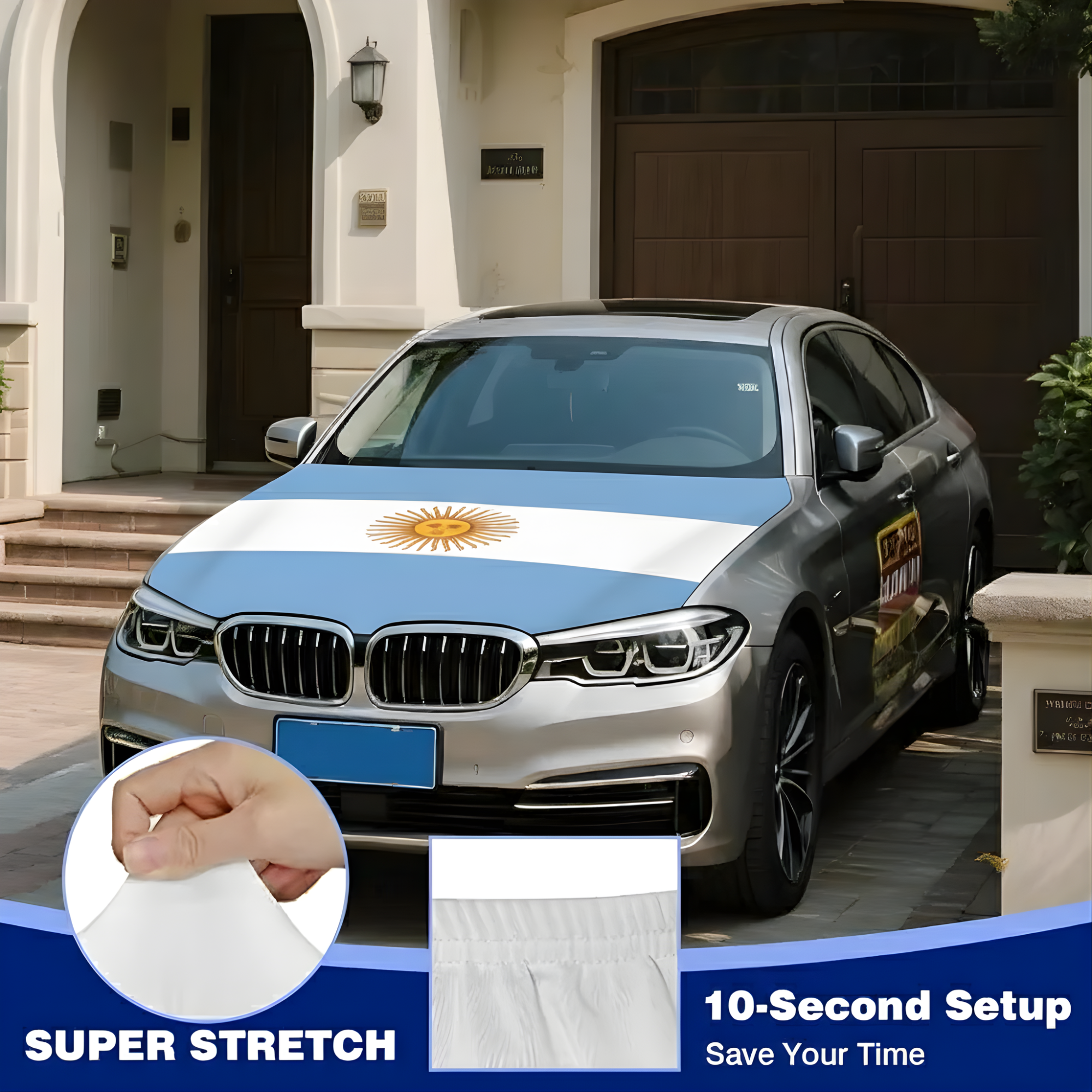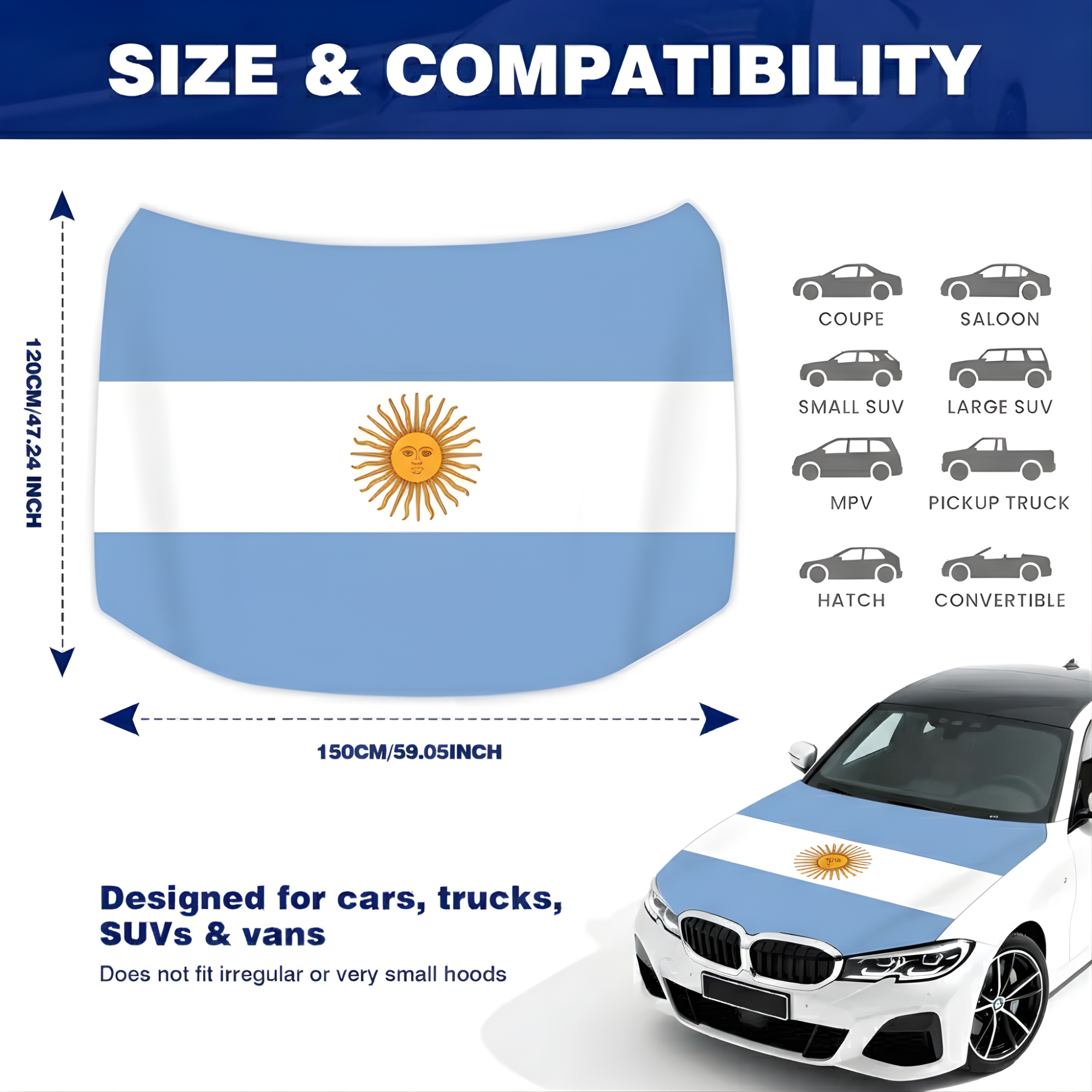 • Printed Argentina national flag design for patriotic vehicle display