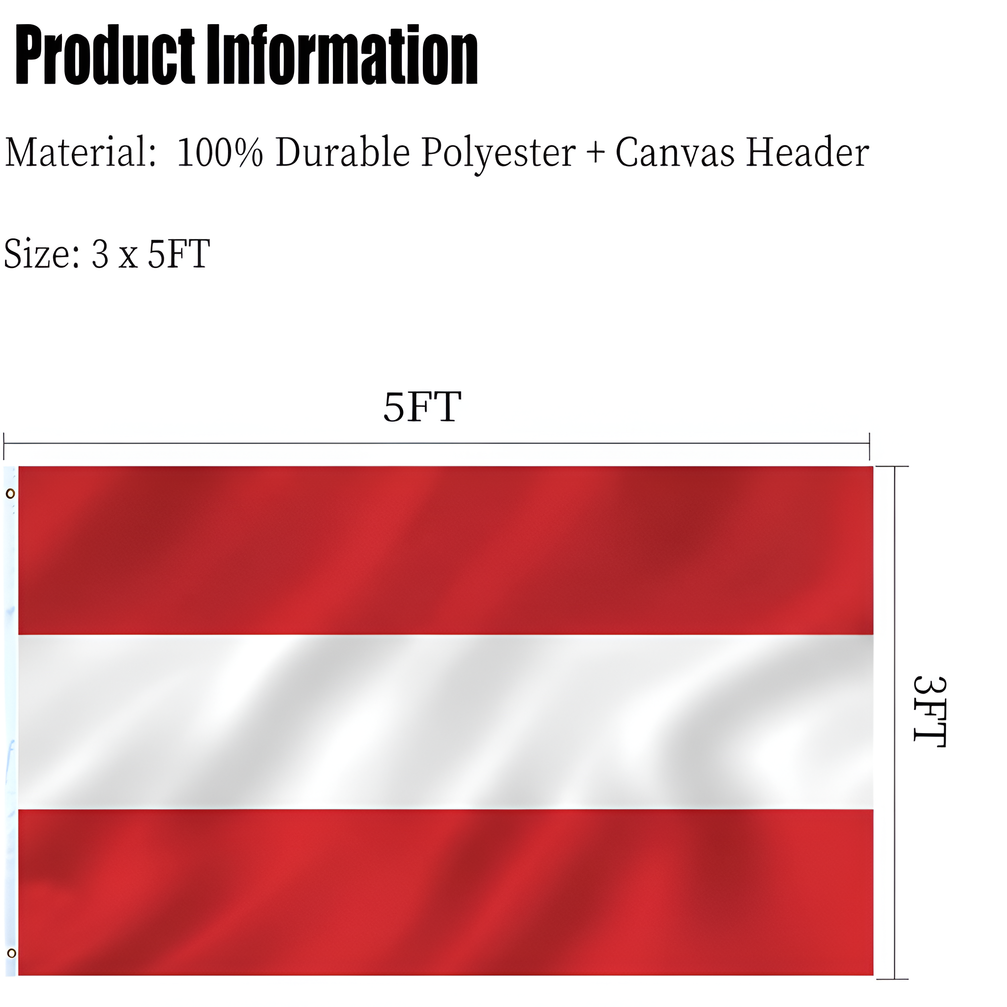 Fade resistant printing helps maintain the distinct red and white colors during extended periods of display, while reinforced stitching along the edges supports the overall structure during outdoor use. The lightweight fabric moves smoothly even in mild wind conditions, creating a balanced presentation during football tournaments, cultural gatherings, and everyday decoration. This overview highlights the key product details to help customers review specifications before selecting the item.