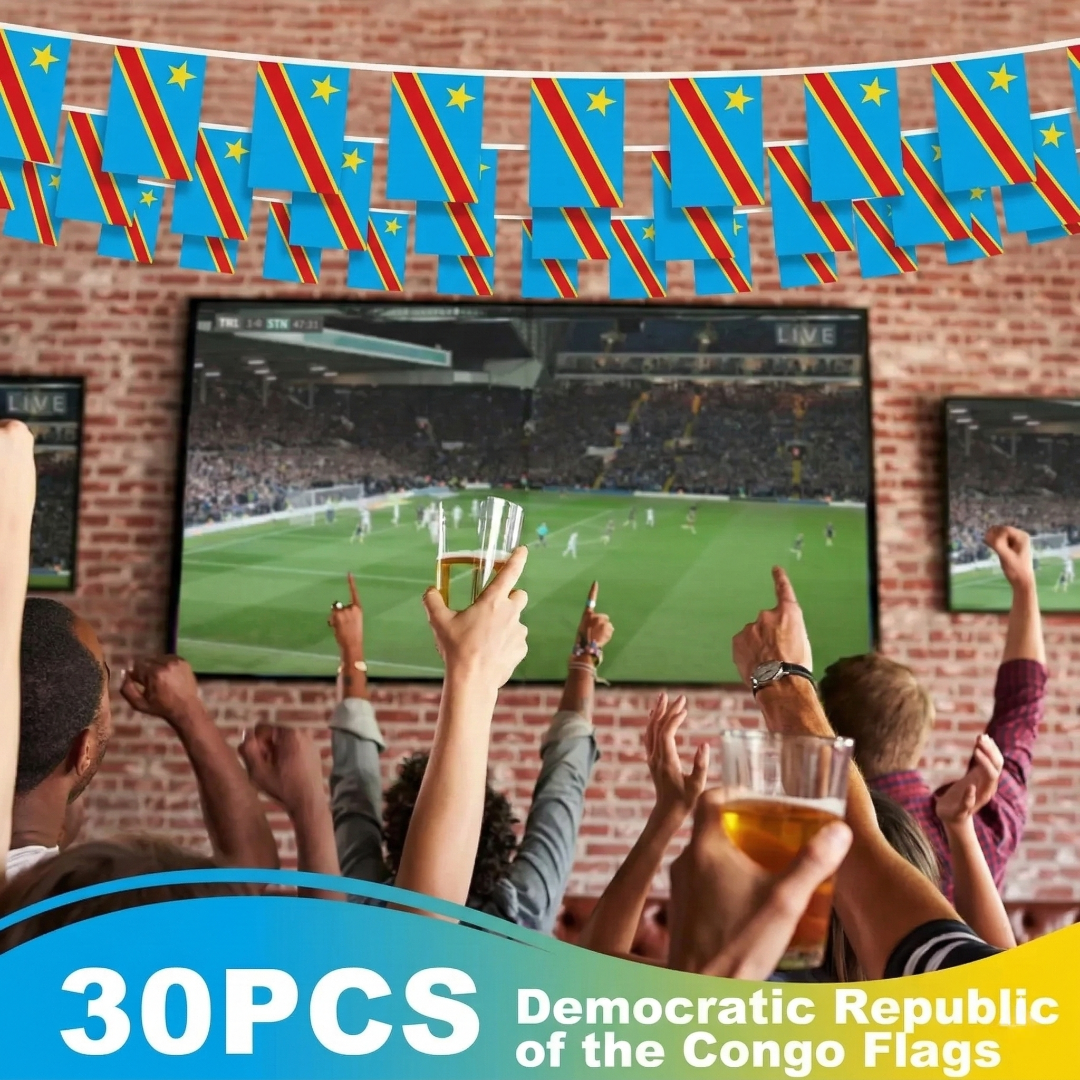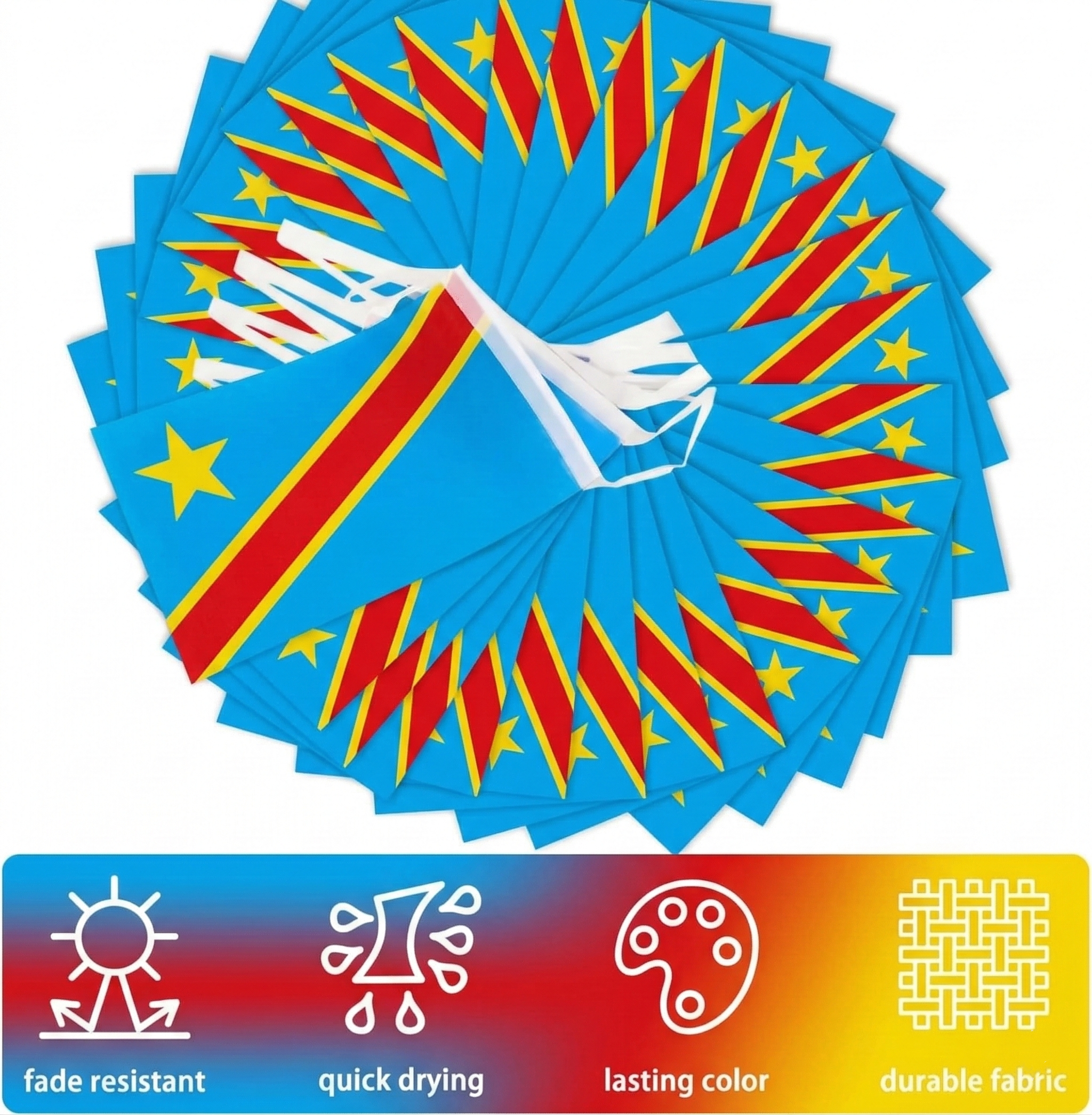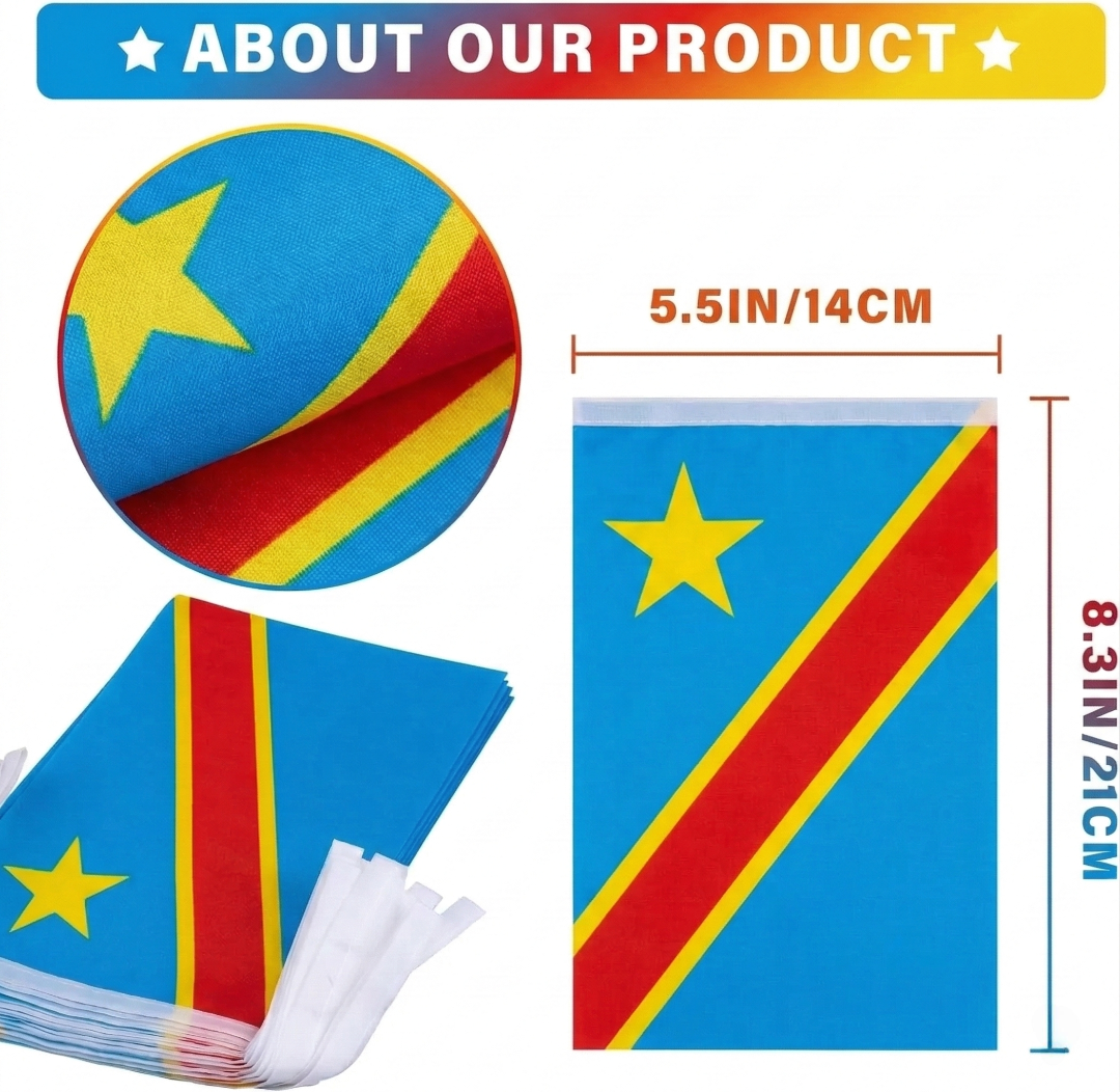 - 33 foot banner string featuring 30 Democratic Republic of the Congo mini flags