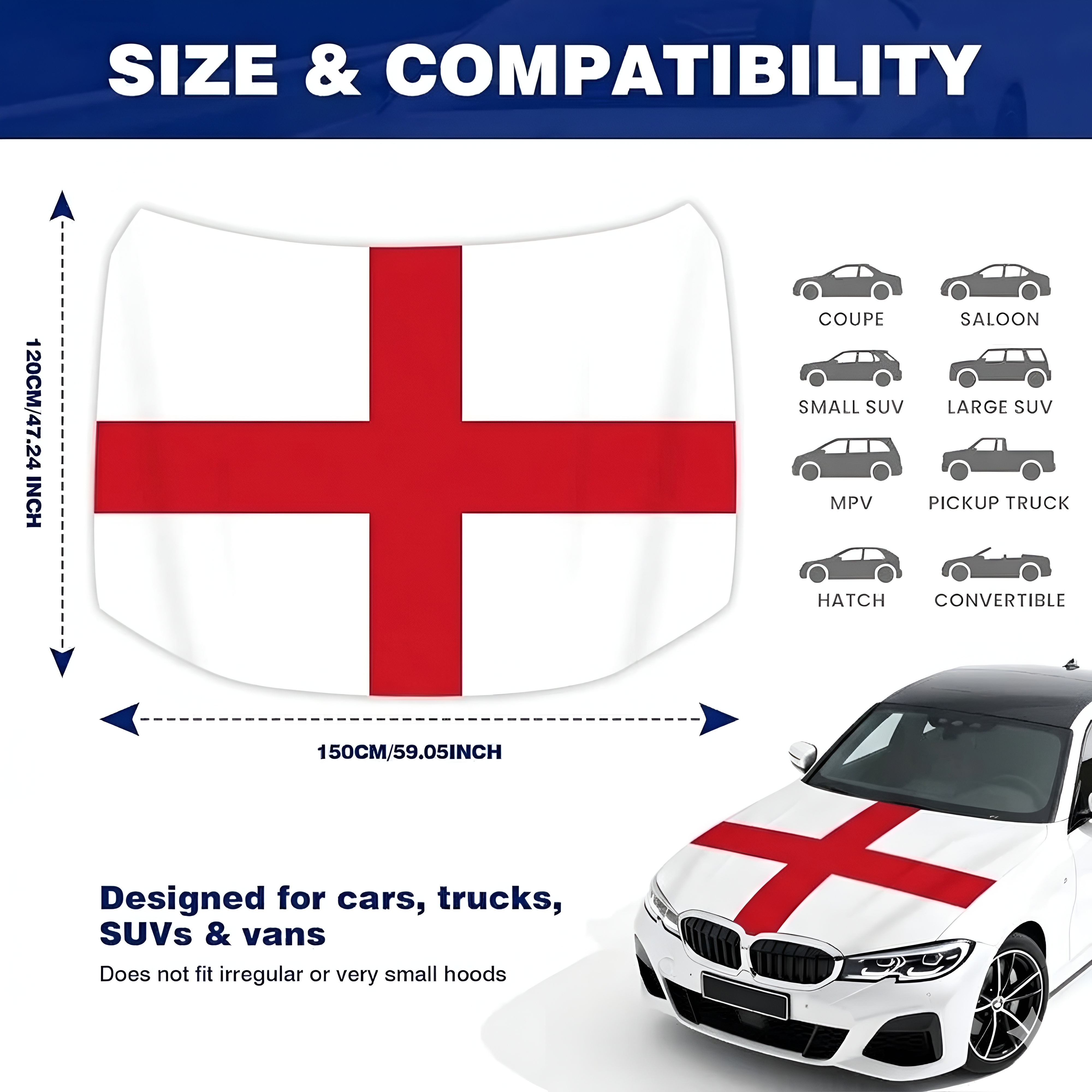 • Printed England national flag design for patriotic vehicle display