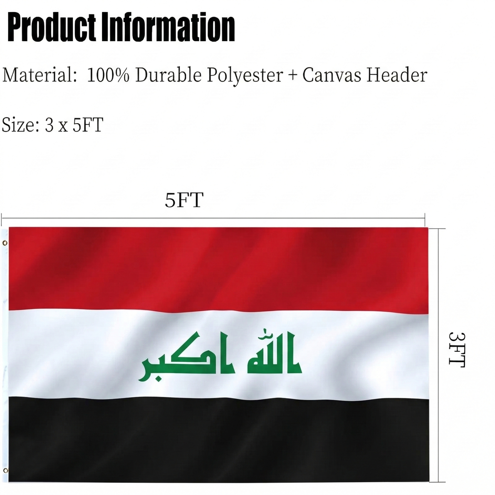 The Official FIFA 2026 Iraq Flag in a 3 × 5 ft format is designed for display in both indoor and outdoor environments. The three-layer 200D polyester structure features a double-sided layout so the design and colors appear correctly from both sides instead of as a mirrored image.