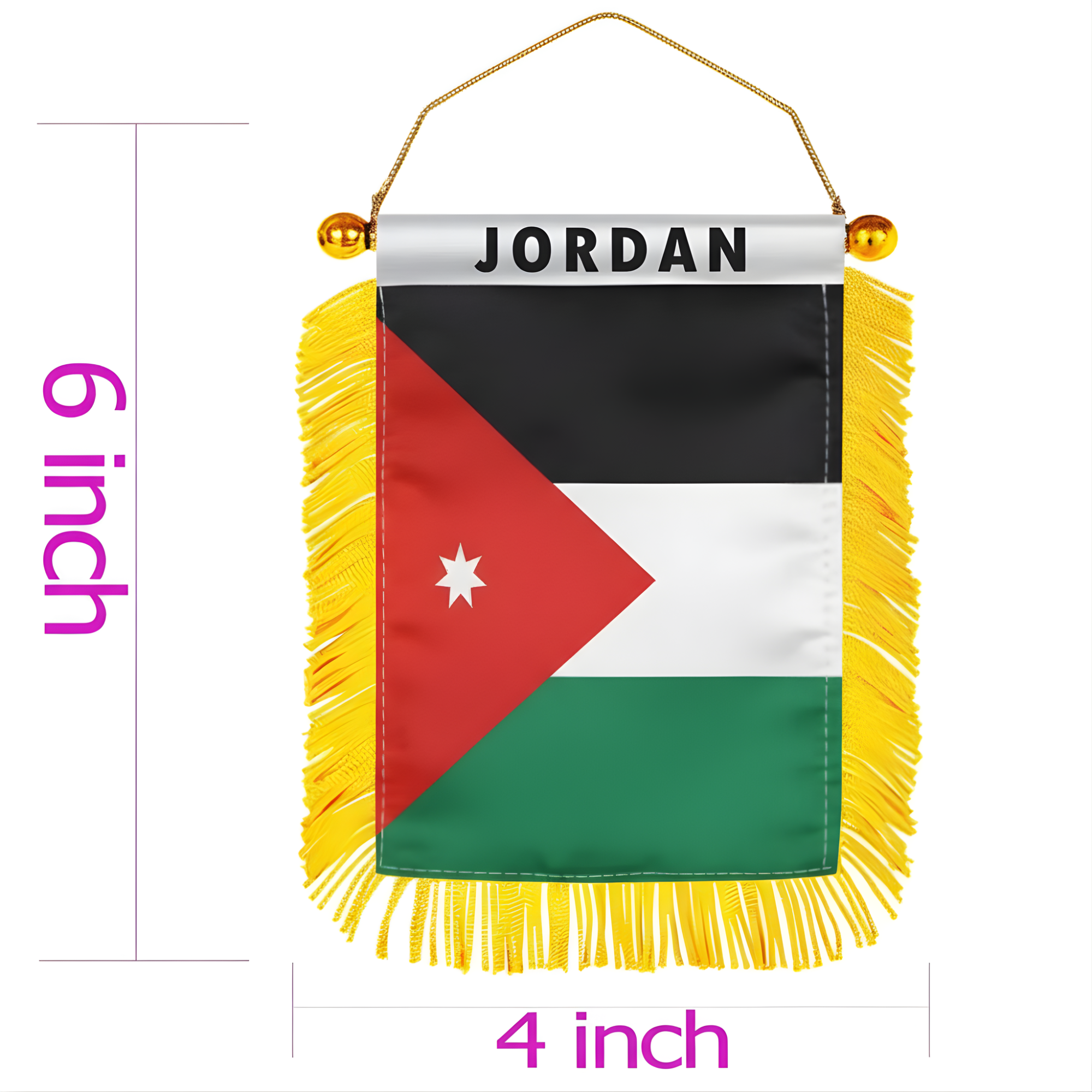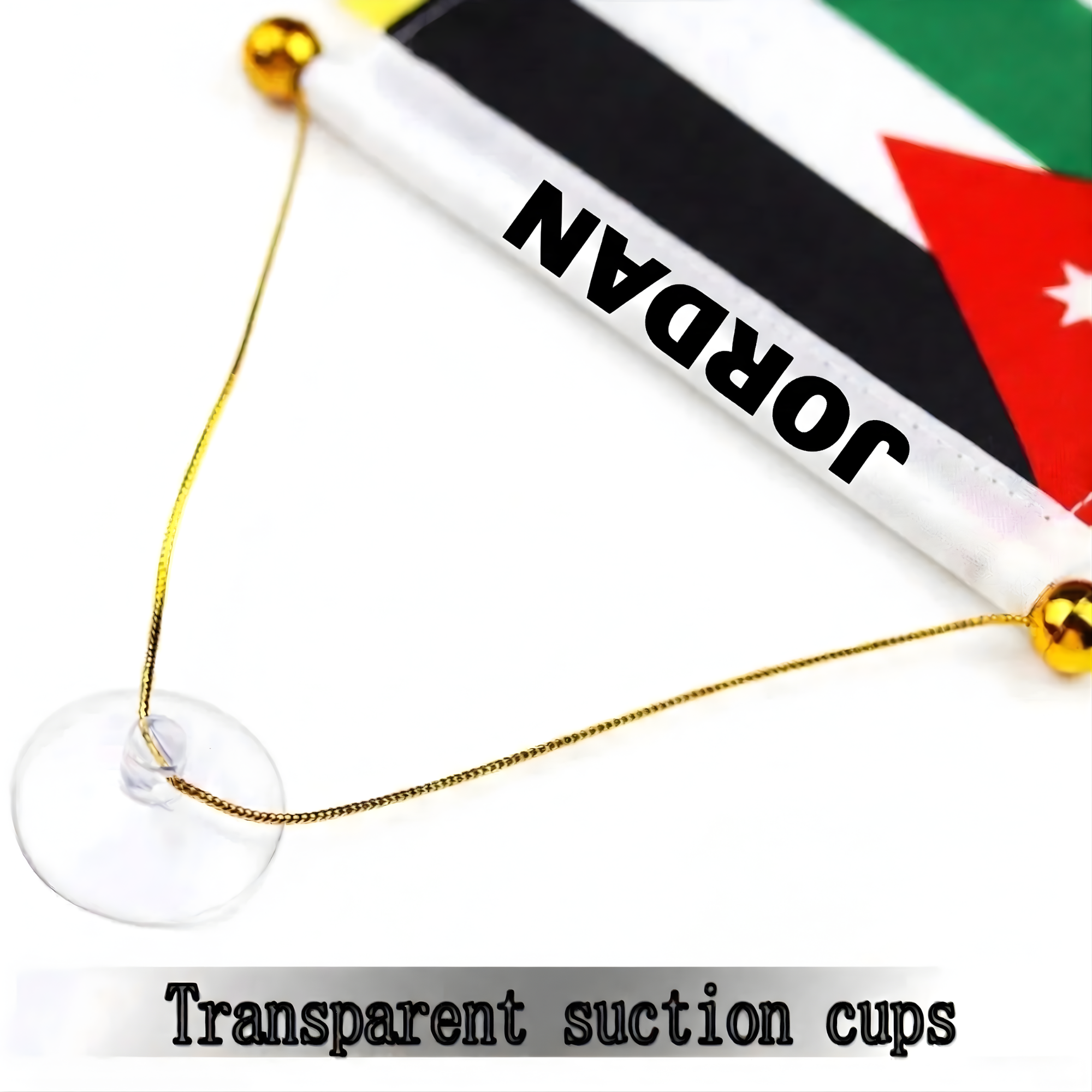 This Official FIFA 2026 Jordan Car Window Mini Decorative Flag is a small decorative banner created for vehicle windows and interior display spaces. Measuring 4 x 6 inches, the mini double sided flag presents the red triangle with the black, white, and green horizontal stripes of the Jordan national flag clearly visible from both sides. The compact size allows it to add a patriotic element during football tournaments, national holidays, Independence Day celebrations, and daily decoration. The lightweight fabric allows easy placement without affecting normal vehicle use or interior arrangements. Fade resistant and UV resistant color dyes help maintain strong color visibility during extended display periods. Designed for both automotive and indoor environments, this mini decorative flag provides a simple way to express national pride and tournament support.