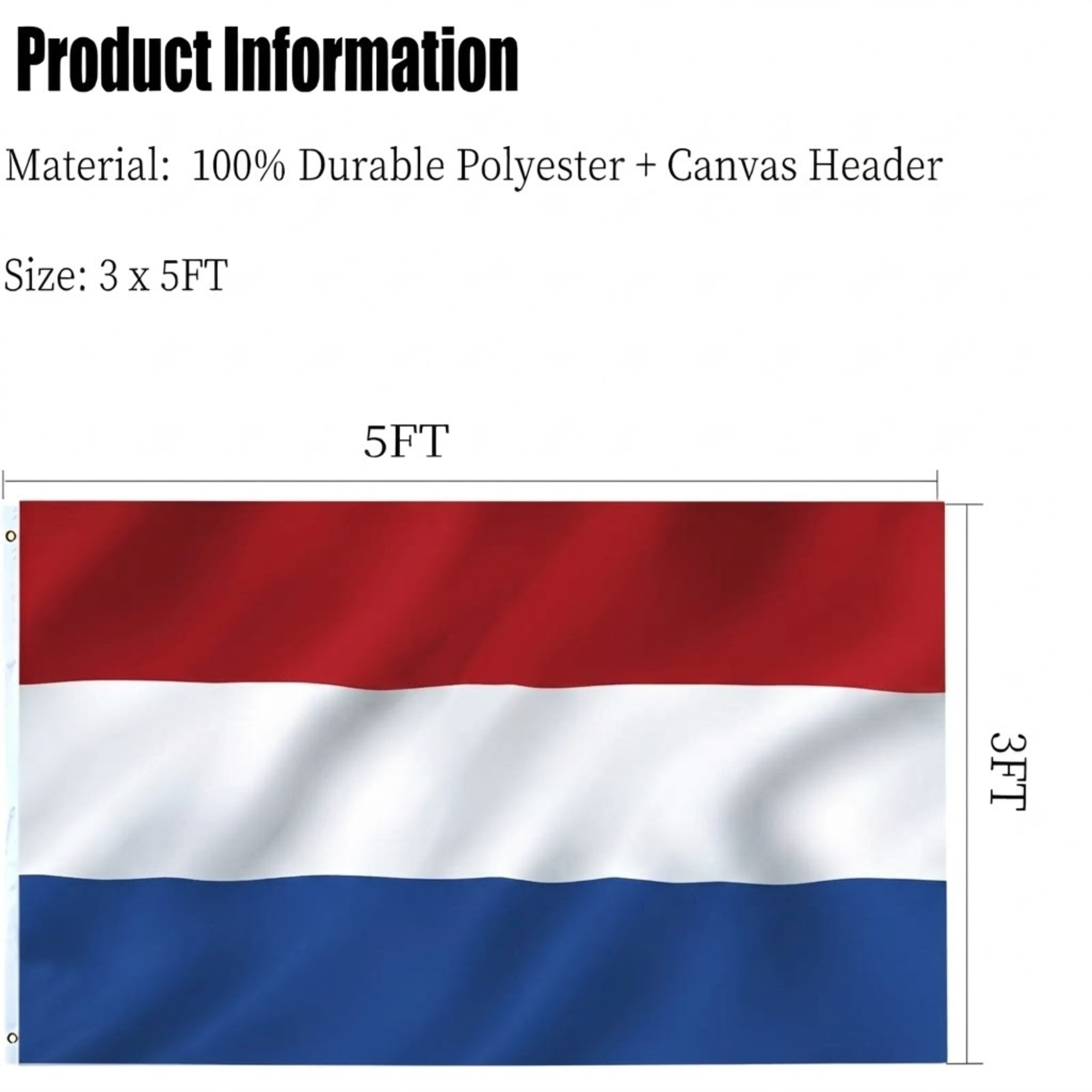 This 3x5 outdoor Official FIFA 2026 Netherlands Flag is designed for reliable display in varied environments, offering a bold presentation of national pride. Crafted with three-layer 200D polyester construction, the double-sided design ensures the tricolor appears correctly on both sides rather than as a reverse image. A reinforced canvas-style header enhances structural stability, making it suitable for gardens, patios, marine settings, public spaces, and indoor décor. Fade-resistant printing helps preserve vibrant tones over time, while reinforced stitching along the edges supports extended outdoor use.