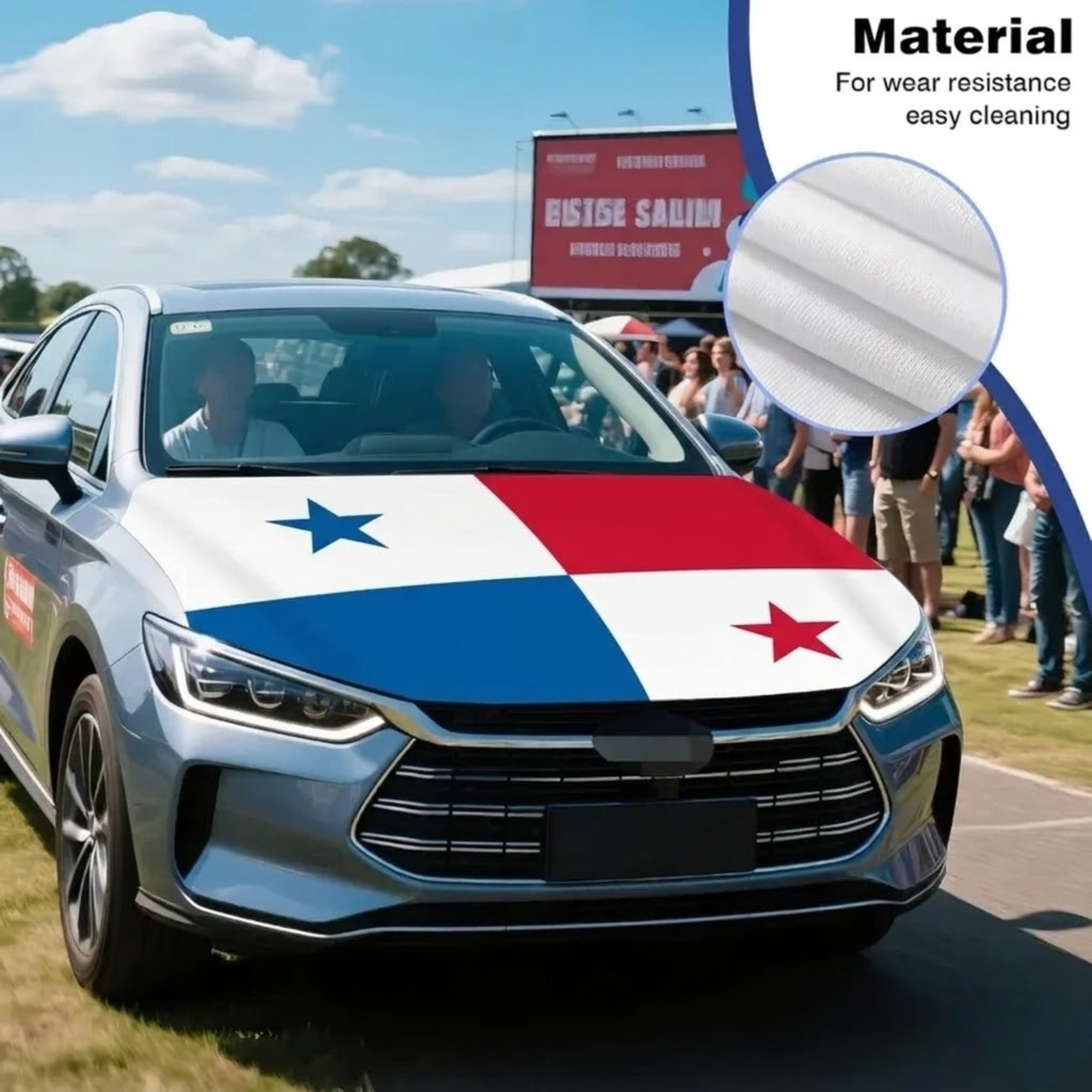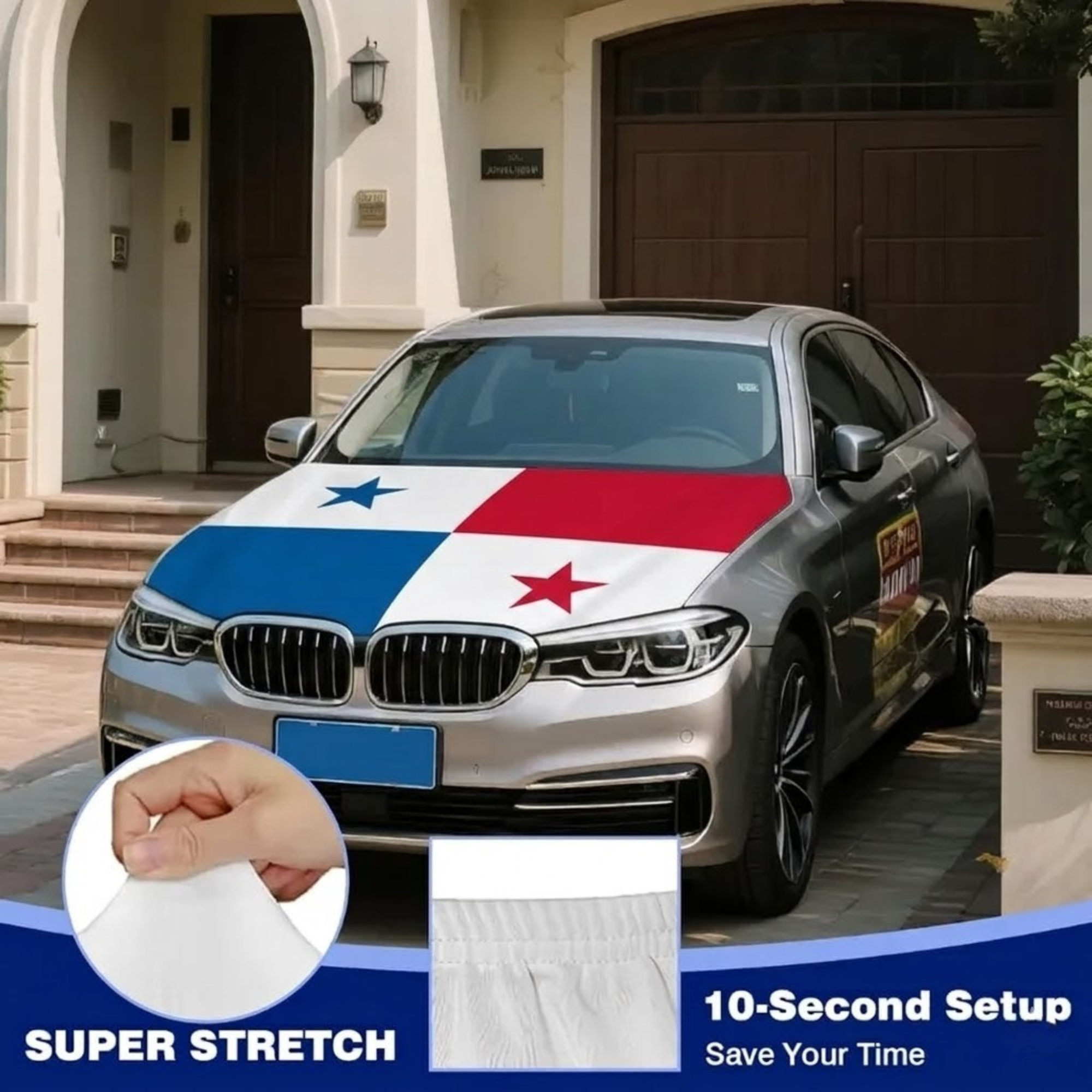 This Official FIFA 2026 Panama Flag Car Hood Cover is designed to create a bold national display while providing practical surface coverage for everyday driving. Measuring approximately 4 × 5 feet, it offers a universal fit suitable for many cars, trucks, and SUVs. Made from stretchable polyester fabric, the material fits smoothly across the hood area and maintains a neat appearance during regular use. The Panama flag design features the recognizable red, white, and blue sections with star symbols, creating a noticeable visual display for sporting events, parades, and national celebrations. The flexible fabric structure allows quick placement and removal, making it convenient for repeated or occasional use. Designed for outdoor conditions, the material helps maintain its appearance during sun, wind, and light rain exposure while supporting everyday vehicle display.