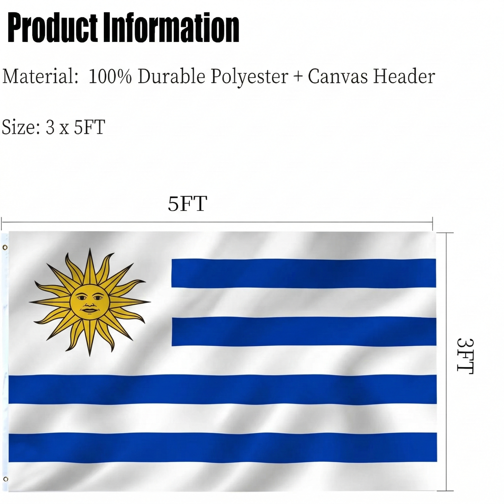 The Official FIFA 2026 Uruguay Flag in a 3 × 5 ft format is designed for display in various indoor and outdoor environments. The three-layer 200D polyester structure features a double-sided format so the emblem and colors appear correctly on both sides rather than as a mirrored image.
