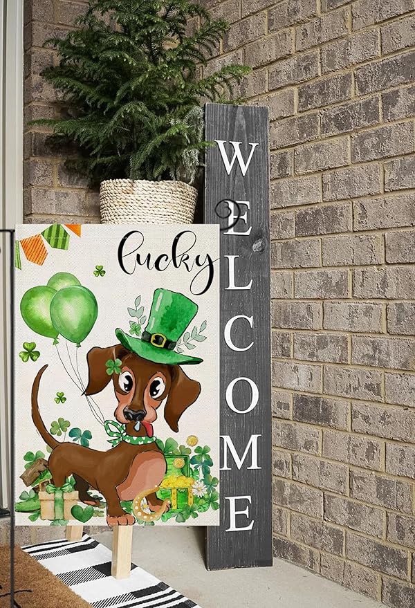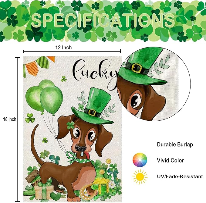 This St Patricks Day Dog Garden Flags for Outside combines festive charm with construction, making it a practical and stylish choice for holiday decor. Whether placed in a garden, on a porch, or near an entryway, it adds a seasonal touch that celebrates the holiday spirit. Ideal for personal use or as a thoughtful gift, this flag enhances outdoor spaces with its vibrant and cheerful design.
